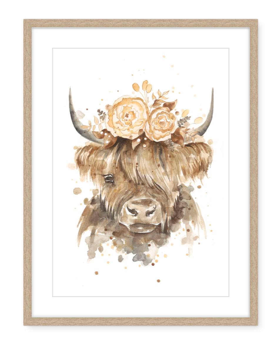 ’Helga the Highland’ is a watercolour fine art print of an original painting by Michelle Clarke. It is printed on 316GSM cotton rag paper.