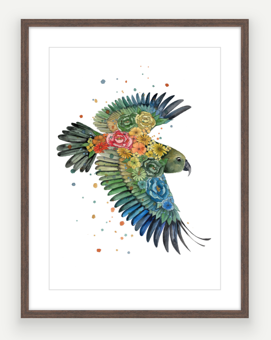 'Kea’ is a watercolour fine art print from the Aotearoa Florals Collection. This is a print of an original painting by Michelle Clarke. It is printed on 316GSM cotton rag paper.