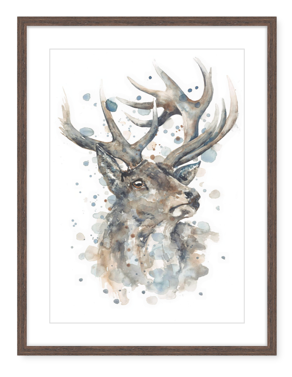 ’Stag’ is a watercolour fine art print of an original painting by Michelle Clarke. It is printed on 316GSM cotton rag paper.