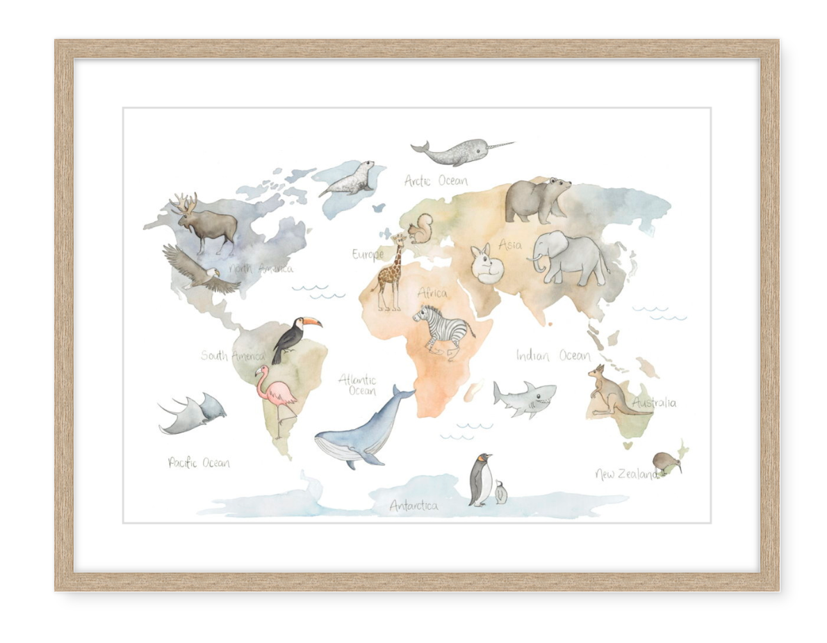 ’World Map' is a watercolour fine art print of an original painting by Michelle Clarke. It is printed on 316GSM cotton rag paper.